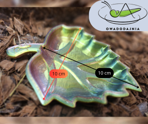Miseczka terrarystyczna wykonana w technologii druku 3D, zabezpieczona żywicą, łączy funkcję użytkową z dekoracyjną. Doskonale sprawdzi się jako poidełko lub miejsce na owoce dla gadów, a jej forma inspirowana naturą subtelnie podkreśla charakter każdego terrarium. Dodatkowym detalem jest motyw jaszczurki umieszczony na ogonku liścia, nawiązujący do tematyki egzotycznej.