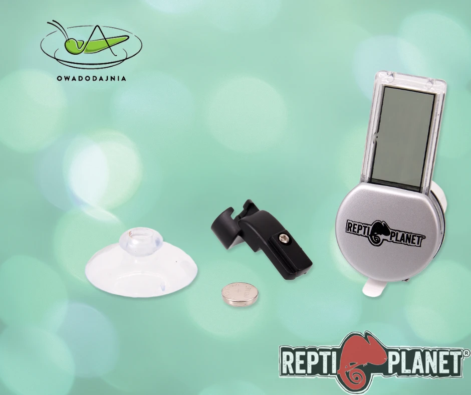 Termometr/ higrometr ReptiPlanet wewnętrzny z przyssawką do montażu.